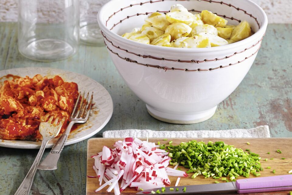 Cheesy Bbq Pulled Chicken Mit Wurzigen Kartoffelspalten