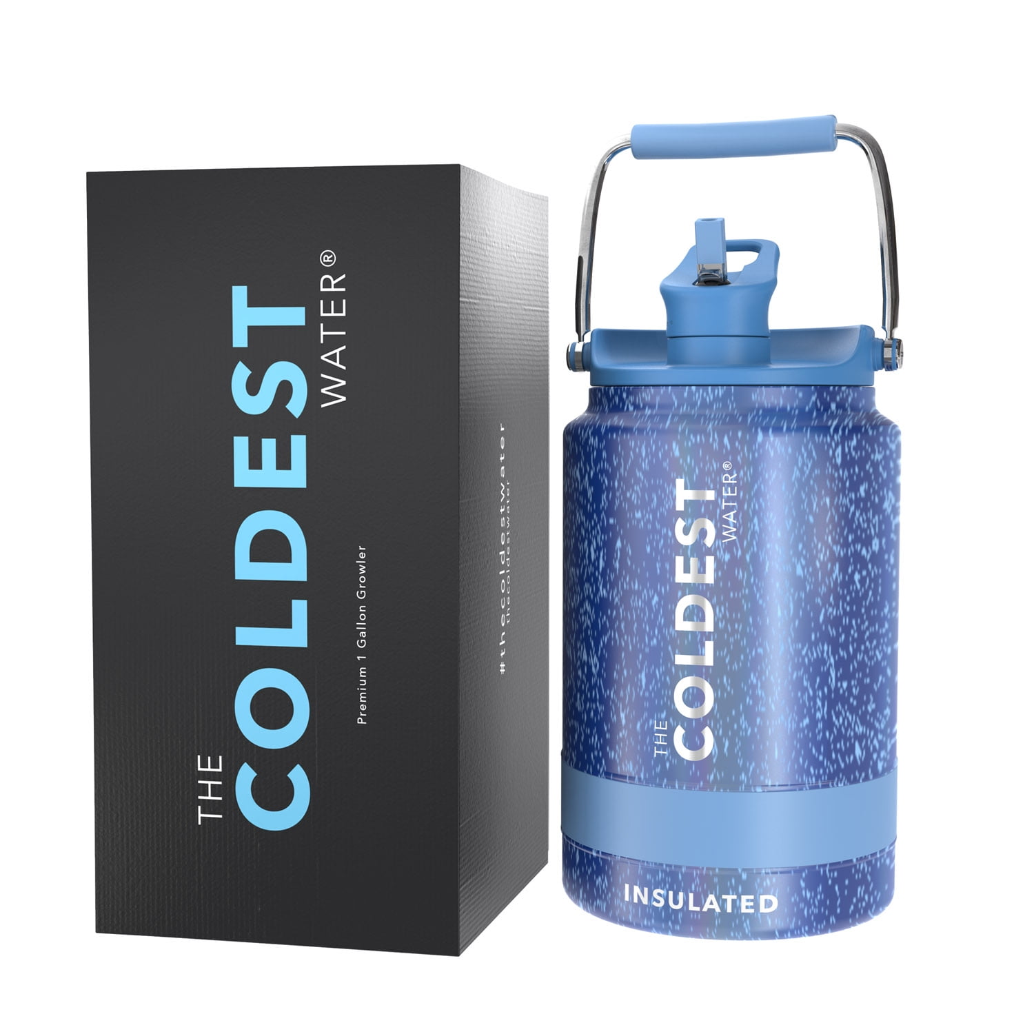 Coldest Sports Water Bottle 128 Oz Straw Lid Leak Proof Vacuum Insulated Stainless Steel Hot Cold Double Walled Thermo Mug Metal Canteen Gallon Purple Walmart Com